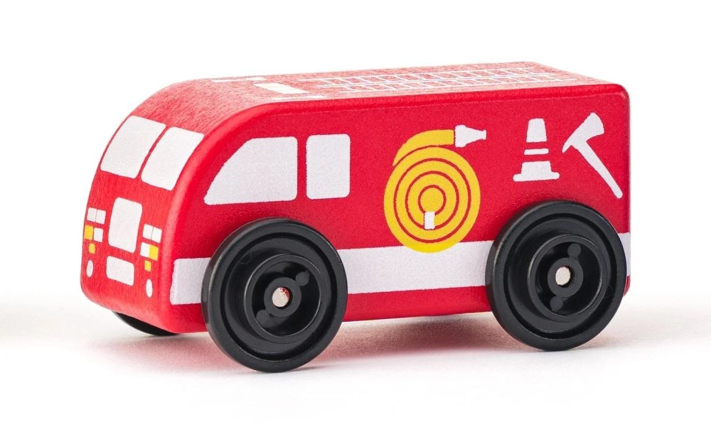 A járművekkel való játék fejleszti a kéz–szem koordinációt, a térbeli képzelőerőt és a szociális tanulást. A robusztus fa szerkezet és a simán futó kerekek egyenletes haladást biztosítanak bármely sík felületen, otthon és az óvodában is.