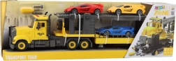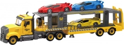 Összeszerelhető vontatókamion fényekkel, hangokkal és sportautókkal