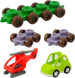 Minden elem betűvel vagy számmal van jelölve, ami támogatja a logikus gondolkodás, a memória és a finommotorika fejlődését. A gyerekek egyszerű építményeket készíthetnek, első szavakat rakhatnak ki és számolhatnak. A figurák, járművek és szerkezeti elemek bővítik a játék lehetőségeit.