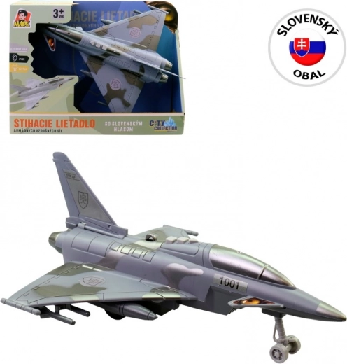 Ez a valósághűen kidolgozott vadászgép minden kis repülésrajongót elbűvöl. Elég egy lökés, és a lendkeréknek köszönhetően elindul, miközben a LED fények és az autentikus hangok megteremtik az izgalmas játék hangulatát. A stabil futómű szabadon forgó kerekekkel biztosítja a sima mozgást a padlón.