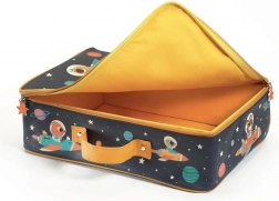 A DJECO gyerek textil bőrönd finoman színezett űr dekorral ideális utazásokhoz, nagyszülőknél töltött hétvégékre és mindennapi apróságok hordására. Az erős vászon és a vízlepergető felület védi a tartalmat, míg az átgondolt belső elrendezés mindent a helyén tart.