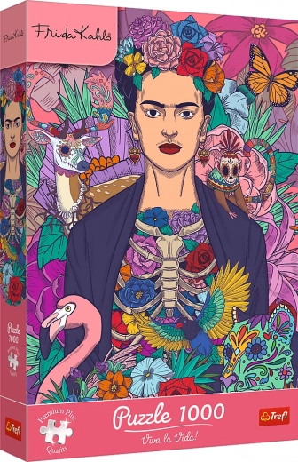 Trefl Premium Plus kirakó 1000 darabbal, Frida Kahlo – Kivirágzott lélek motívummal. Minőségi karton, pontos kivágások, mintakép és FSC környezetbarát csomagolás.