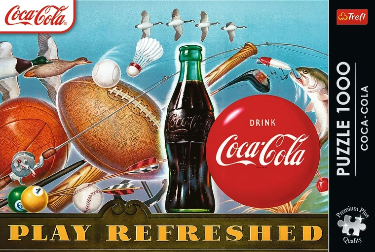 Prémium TREFL Premium Plus COCA-COLA puzzle, 1000 darab. Minőségi karton, precíz kivágások, minta, környezetbarát FSC csomagolás. Méret 68,3 × 48 cm.