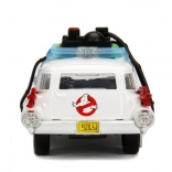 Részletes tetőfelszerelés, kék fényhidak és az ikonikus piros csík pontosan idézik a GHOSTBUSTERS film legendás járművét.