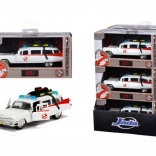 A GHOSTBUSTERS-filmből ismert ikonikus Ecto-1 mentőautó visszatért egy precíz fémmodell formájában. A masszív die-cast kivitelnek, a valósághű nyomatoknak és a részletes tetőfelszerelésnek köszönhetően a modell miniatűr replikája az eredeti filmes járműnek.
