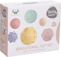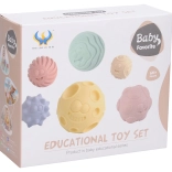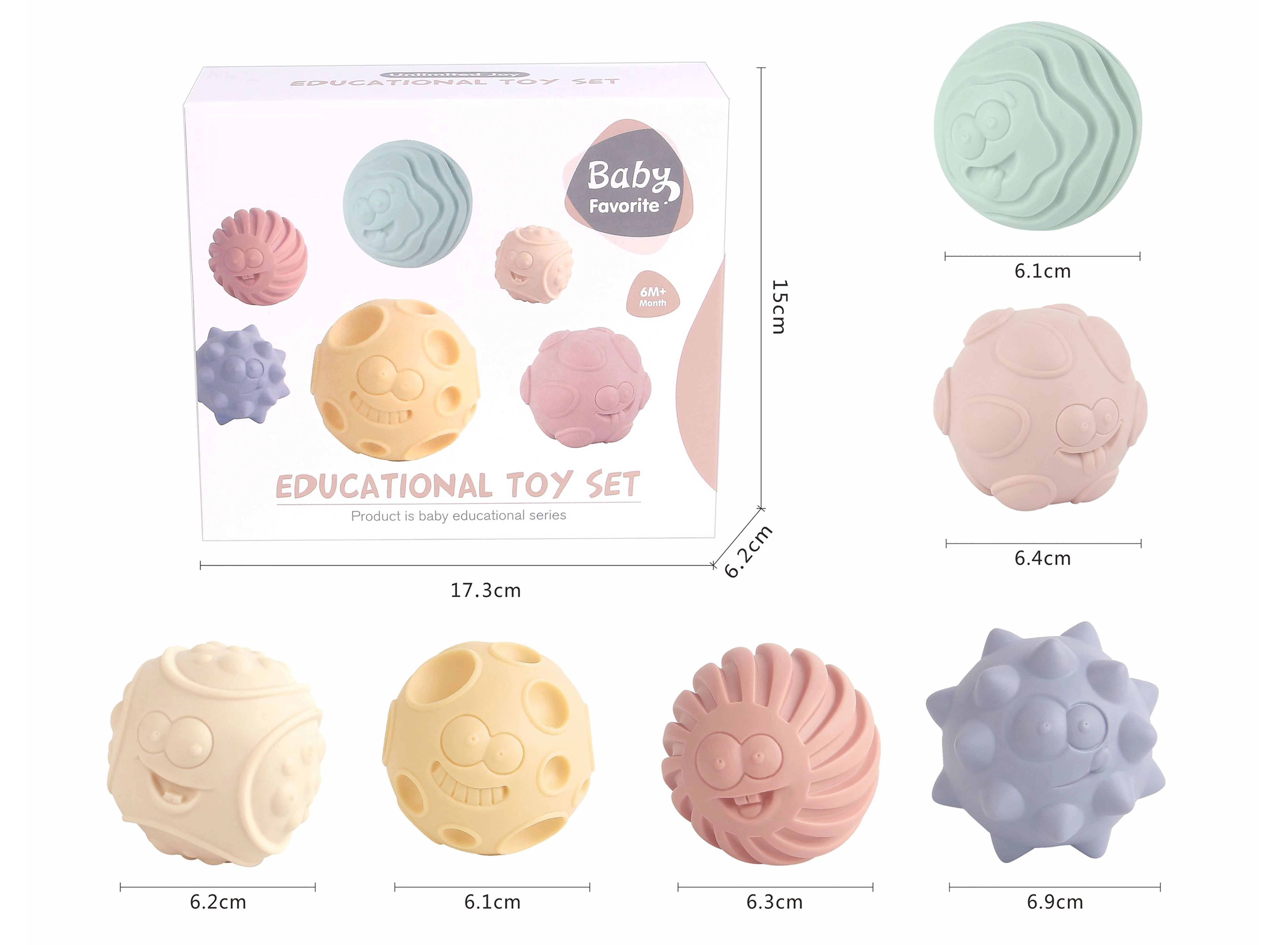 Szórakoztató motorikus labdakészlet gyerekeknek, amely fejleszti a finommotorikát, az érzékelést és a tapintásos felfedezést. 6 darab, 6 cm átmérőjű puha labdát tartalmaz különböző textúrákkal, amelyek biztonságosak a kis kezek számára, és összenyomáskor sípolnak az extra szenzoros stimuláció érdekében.