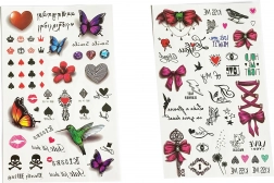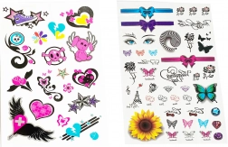 Fedezd fel az ideiglenes tetoválások színes világát lányoknak. Minden íven több tucat aranyos motívum található különböző méretekben – pillangóktól és virágoktól a szívecskéken, masnikon és csillagokon át. Az egyszerű lépéseknek köszönhetően felnőtt felügyelete mellett a gyerekek is könnyedén felhelyezhetik. A tetoválások ideálisak bulikra, farsangra, party csomagokba, vagy hétvégi kreatív díszítésnek.