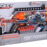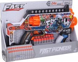 Szórakoztató gyerekjáték akciós játékokhoz – habgolyós géppisztoly revolver stílusban, 35 cm hosszúságban. Gyors lövés, biztonságos puha lövedékek és egyszerű, elemes működés 4× AA (nem tartozék). A csomagban 24 hablövedék található a hosszan tartó szórakozáshoz otthon és a szabadban.