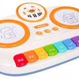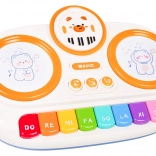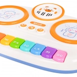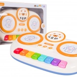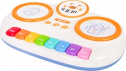 Ez az interaktív kis zongora érintésérzékeny ütőhangszerekkel a 12 hónapos kortól ajánlott kis zenészek számára készült. A színes billentyűk és a két puha, világító dob bevonják a gyerekeket a hangok, ritmusok és vidám zajok világába. A módok közötti váltásnak köszönhetően a kicsik könnyedén felfedezhetnek különféle korai zenei készségeket – a dallamjátéktól a dobolásig.