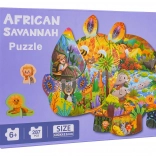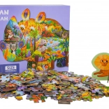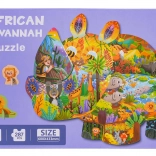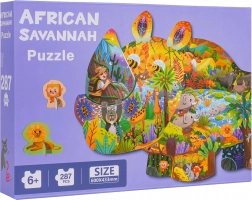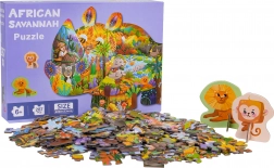 Ez a kreatív, szafari állatokat ábrázoló puzzle-készlet órákon át tartó szórakozást és tanulást kínál 6 éves kortól. Összerakás után egy nagy, orrszarvú alakú képet hoztok létre szafari állatok illusztrációival. Két speciális, talppal ellátott elem (oroszlán és majom) önállóan is felállítható például polcra vagy asztalra.