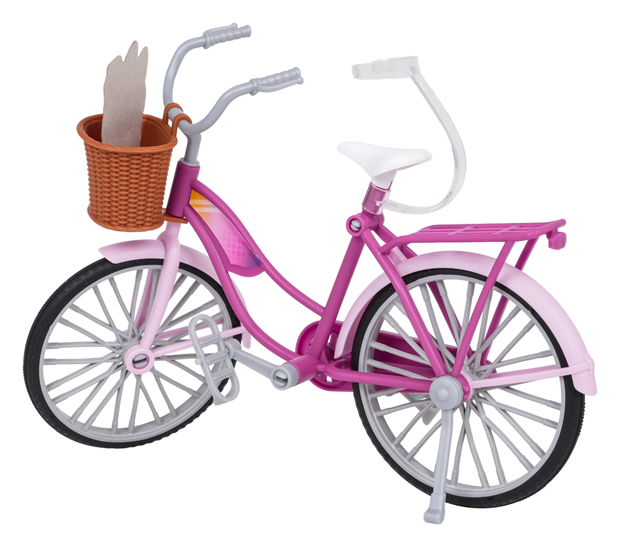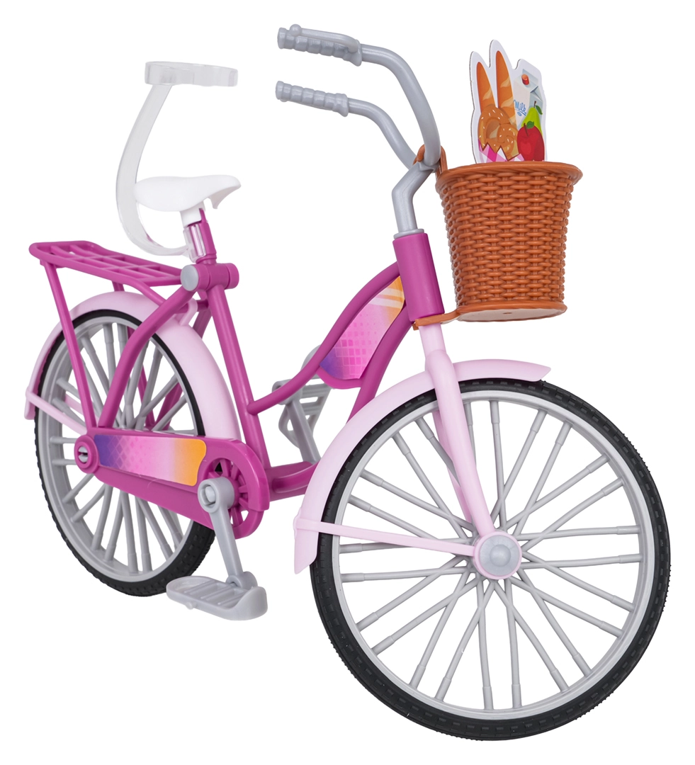 Varázsolj fantáziadús világokat az elegáns, rózsaszín baba kerékpárral. A valósághű részleteknek, például a mozgatható kerekeknek, pedáloknak és kormánynak köszönhetően a gyerekek elmerülhetnek a kreatív játékban és fejleszthetik a finommotorikát. Az elülső, fonott hatású kosár minden úti apróságot elnyel, míg a kitámasztó biztonságosan a helyén tartja a biciklit.