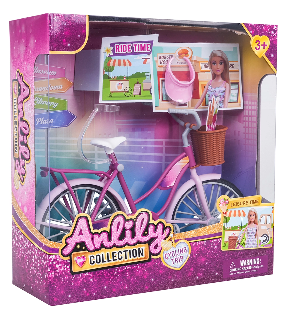 A bájos rózsaszín baba kerékpár elragadtatja a 3 éves kortól ajánlott kisgyerekeket. Részletesen kidolgozott váza, mozgatható kerekei, pedáljai és kormánya, elülső kosara apróságoknak és hátsó csomagtartója van. A csomag tartalmaz kitámasztót a stabil parkoláshoz és egy sapkákat a babának. Minőségi anyagokból, élénk színekben készült – remek ötletes ajándék a szerepjátékok kis rajongóinak.