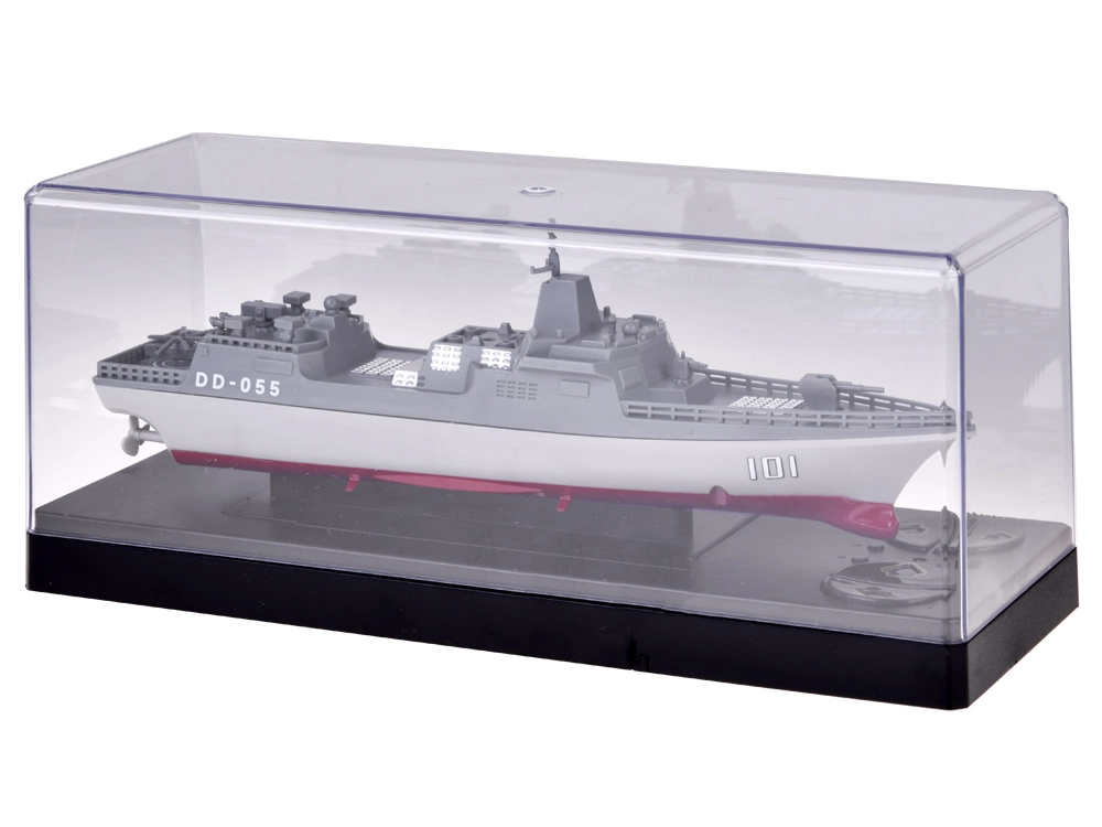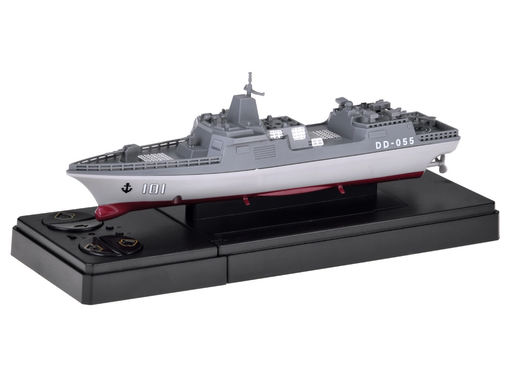 A kompakt RC DD-055 romboló, amelyet a modern Type 055 osztály inspirált, élethű részleteket, könnyű irányítást és USB-töltést kínál. A 20 × 4 × 7 cm-es méreteknek köszönhetően ideális vizes szórakozáshoz, valamint stílusos dísznek a mellékelt mini vitrinekben.
