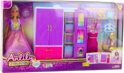 Az ANLILY baba ruhásszekrénnyel szett remek választás a divatot és a kreatív öltöztetést kedvelő gyerekeknek. A masszív szekrény polcokkal, fiókokkal és vállfatartó rúddal segít rendben tartani a kiegészítőket, miközben a gyönyörű ruhás baba készen áll minden alkalomra – a hétköznapoktól egészen a fényűző bálokig.