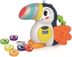 Fedezd fel az első tanulást játékkal egy aranyos baráttal – a CLEMENTONI interaktív Adrián tukánjával. A gyermek témához illő zsetonokat helyez be gyümölcs- és színszimbólumokkal, a tukán csőre pedig ezekre a megfelelő árnyalatú fénnyel reagál. Ez támogatja a vizuális észlelést, a logikus gondolkodást és a szókincs fejlődését.