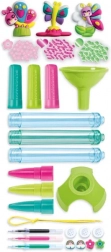 A csomagban teljes felszerelés található, beleértve a színes tintákat, átlátszó csövecskéket, díszeket, gyöngyöket és gumifigurákat. A gyerekek így megtervezhetik saját stílusukat, kombinálhatják a színeket és kiegészítőket, és fejleszthetik kreativitásukat és kézügyességüket.