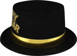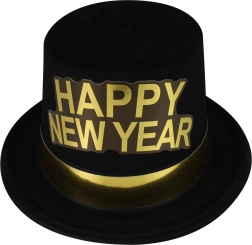Adj szikrát a szilveszternek! Ez az elegáns fekete kalap ragyogó arany szalaggal és HAPPY NEW YEAR felirattal megragadja a figyelmet, és kiemeli az éjféli visszaszámlálás hangulatát. Ideális otthoni bulikra, klubokba és céges estekre.