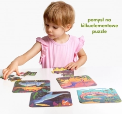 A kirakózás kulcskészségeket támogat: a szem–kéz koordinációt, az alak- és színfelismerést, valamint a koncentrációt. A puzzle-k díszletként is használhatók saját történetek meséléséhez és a dinoszauruszok lenyűgöző korszakának felfedezéséhez.