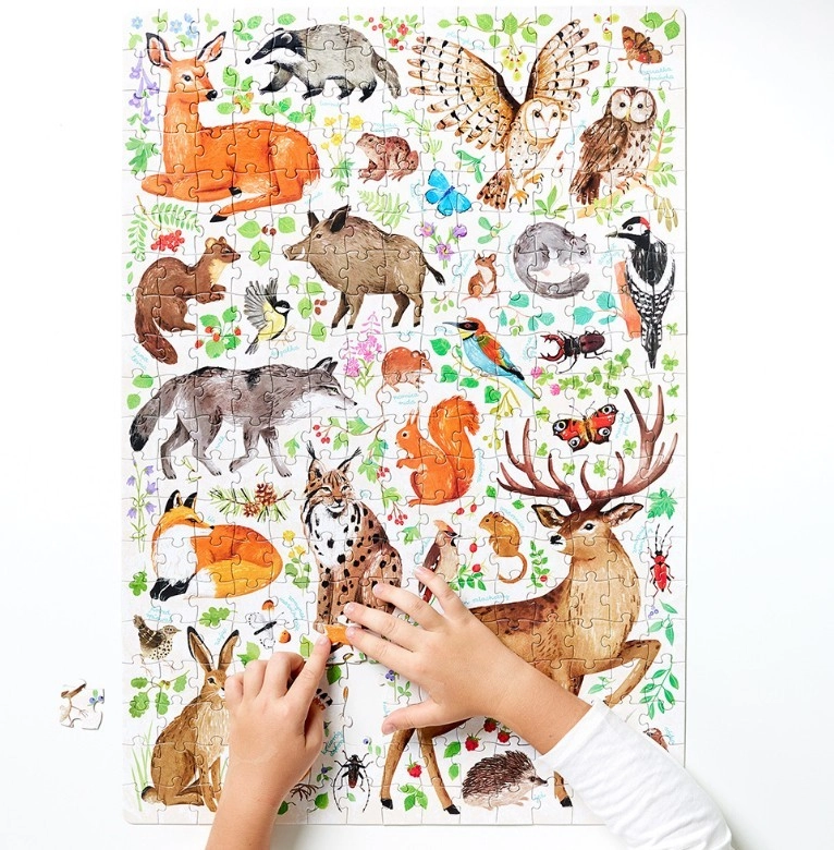 Fedezd fel az erdők és rétek varázsát a nagy, gyönyörűen illusztrált 300 darabos puzzle-lel. Gyerekek és felnőttek számára is oktató jellegű szórakozást, a finommotorika és a logikus gondolkodás fejlesztését kínálja. A csomag része egy plakát is erdei állatokról szóló tényekkel, amely serkenti a kíváncsiságot és a játékos tanulást.