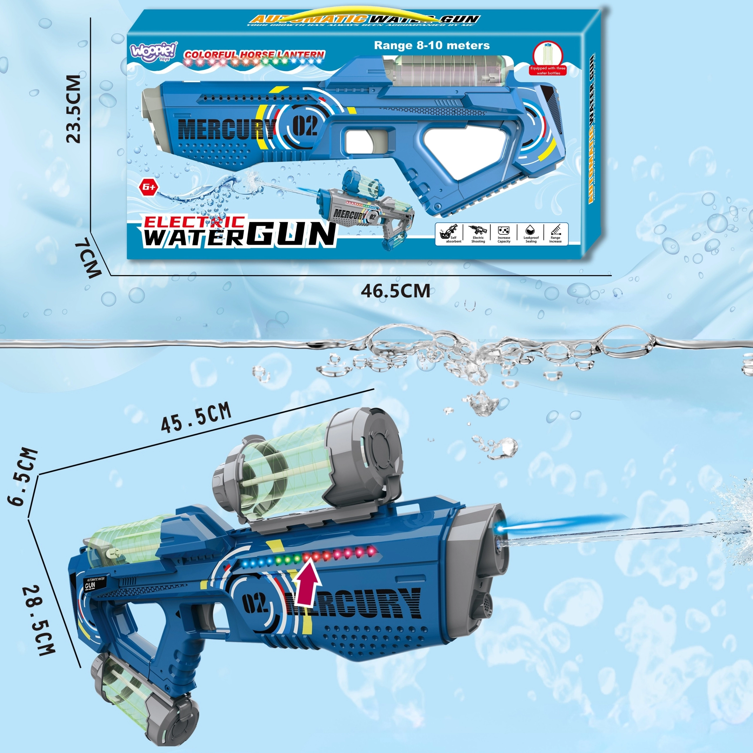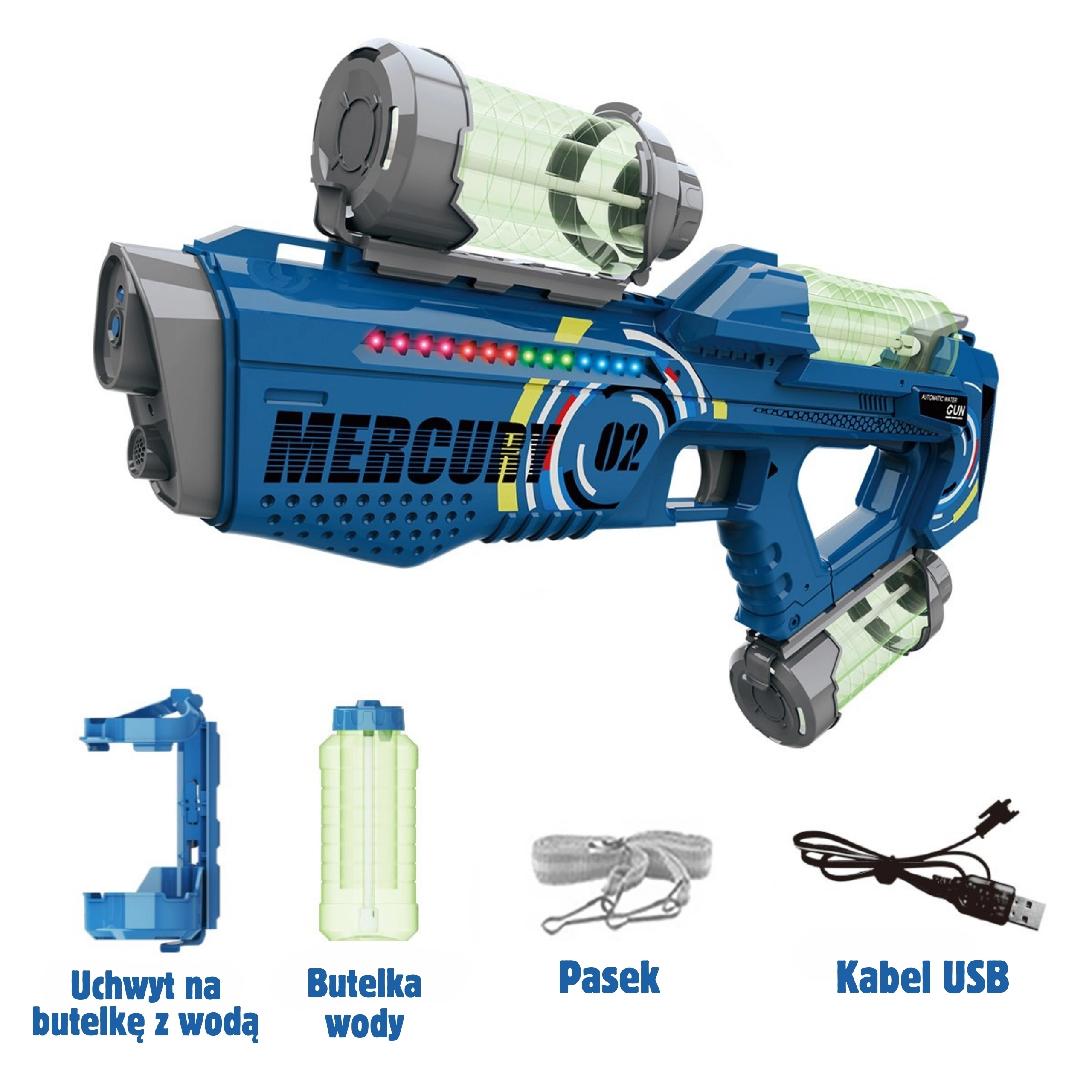 Élvezd a nyarat a WOOPIE MERCURY 02 elektromos vízipisztollyal! Automatikus vízsugár pumpálás nélkül, 2200 mAh kapacitású erős akkumulátor, 3 cserélhető víztartály és USB‑töltés. Remek választás 6 éves kortól gyerekeknek és felnőtteknek – kertbe, vízpartra és vízi csatákhoz.