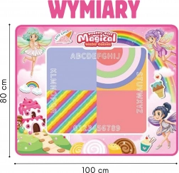 A WOOPIE vízrajzoló szőnyeg lehetővé teszi a gyerekeknek a tiszta és biztonságos, csak vízzel való rajzolást – rendetlenség nélkül, foltok és tinta nélkül. A rajzok néhány perc után maguktól eltűnnek, így a gyerekek újra és újra alkothatnak. A nagy méret, a gazdag tartozékkészlet és a pasztellszínű tündér motívum fejleszti a fantáziát, a finommotorikát és hosszú órákra leköti a gyerekeket otthon és a kertben is.
