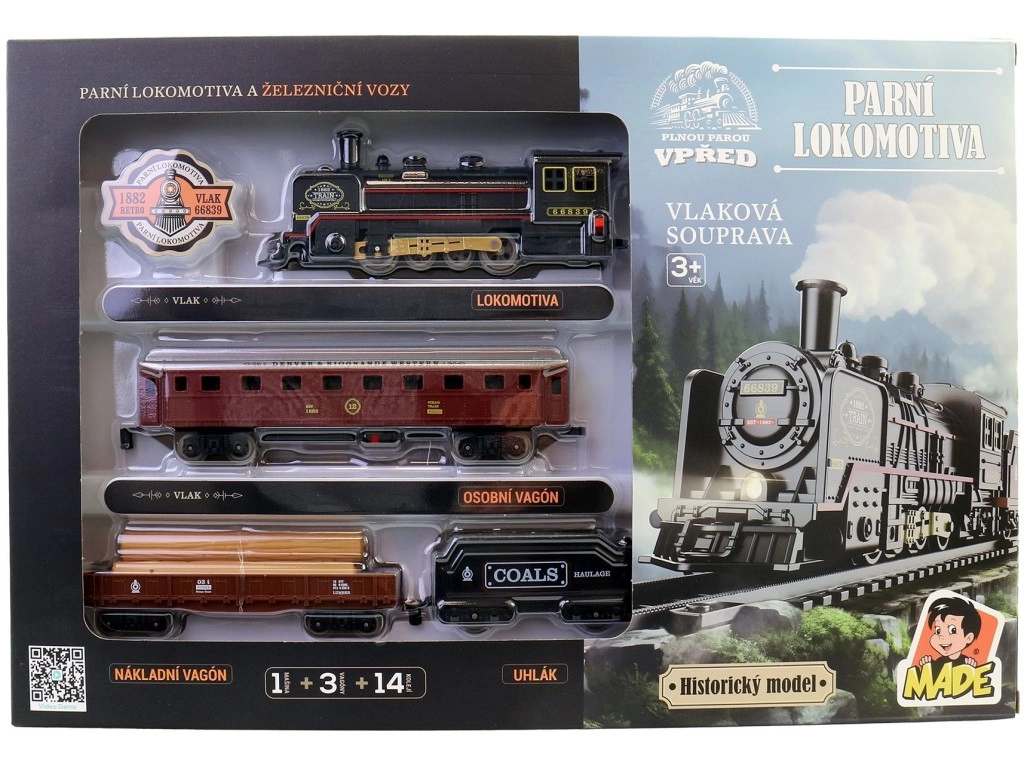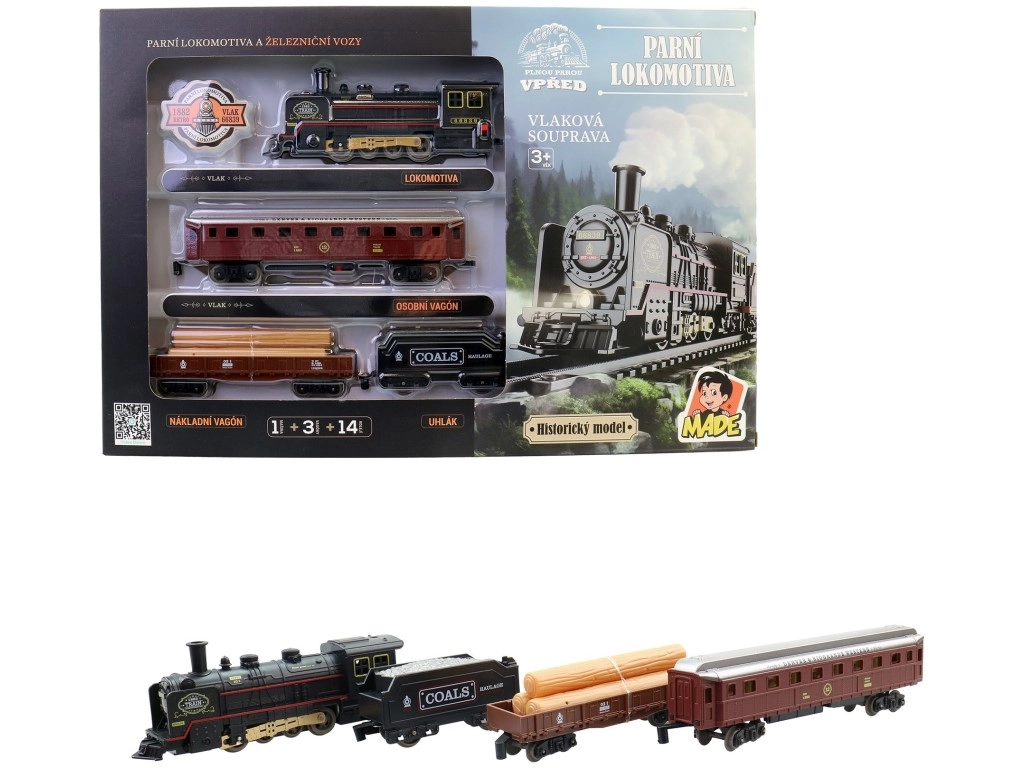 Nem hiányzik a szénes szerkocsi, sem a személykocsi és a tehervagon. A gyerekek utasokat és rakományt szállíthatnak, és saját történeteket találhatnak ki.