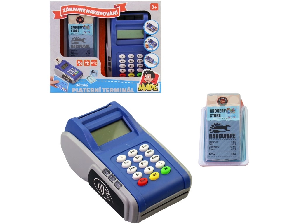 A gyerek fizetési terminál minden boltos játékot valósághű élménnyé változtat. A kis pénztárosok a számbillentyűzettel beírhatják az összegeket, az érintésmentes funkciónak köszönhetően „odakoppinthatják” a kártyát, és gyakorolhatják a kommunikációt és a számolást. A 17 × 14 × 6,5 cm-es kompakt méret elfér hátizsákban vagy gyerektáskában, így otthonra, utazáshoz és óvodába is ideális.