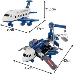 A kihajtható rendőrségi repülő egyetlen játékban hozza el a mentőegységek akciódús világát. Kinyitás után részletes parkolóvá alakul át átjárható rámpákkal, garázsokkal és szórakoztató funkciókkal. A fény- és hangeffekteknek és a hátsókerék-hajtásnak köszönhetően a gyerekek valósághű játékot élhetnek át üldözésekkel és mentőakciókkal.