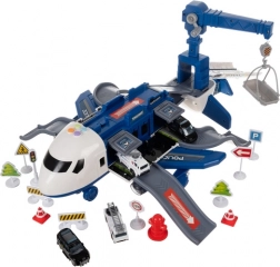 Nagy rendőrségi repülő 3 éves kortól, amely interaktív parkolóvá alakul. Kínál nyitható oldalpaneleket és rámpákat, kézi működtetésű darut, autókilövőt és fény- és hangeffekteket. A csomagban 4 rendőrautó és gazdag közlekedési kiegészítő is található, órákig tartó kreatív játékhoz és a közlekedési szabályok tanulásához.
