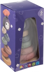 Ez a 8 darabos, puha szenzoros kockákból és gyűrűkből álló szett a legkisebb felfedezők számára készült. A pasztellszínű elemek domború mintákkal, számokkal és betűkkel támogatják a taktilis felfedezést, az alak- és színfelismerést, valamint a korai oktatási készségeket. A készlet biztonságos, könnyen tisztítható, és ösztönzi a gyerekeket a próbálkozásra, nyomogatásra, rakosgatásra és egyszerű építmények létrehozására.