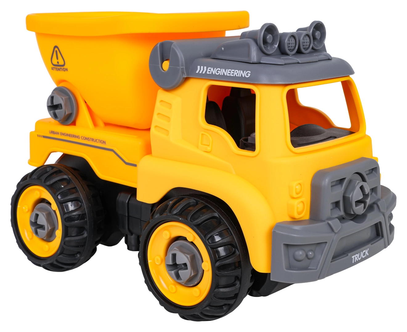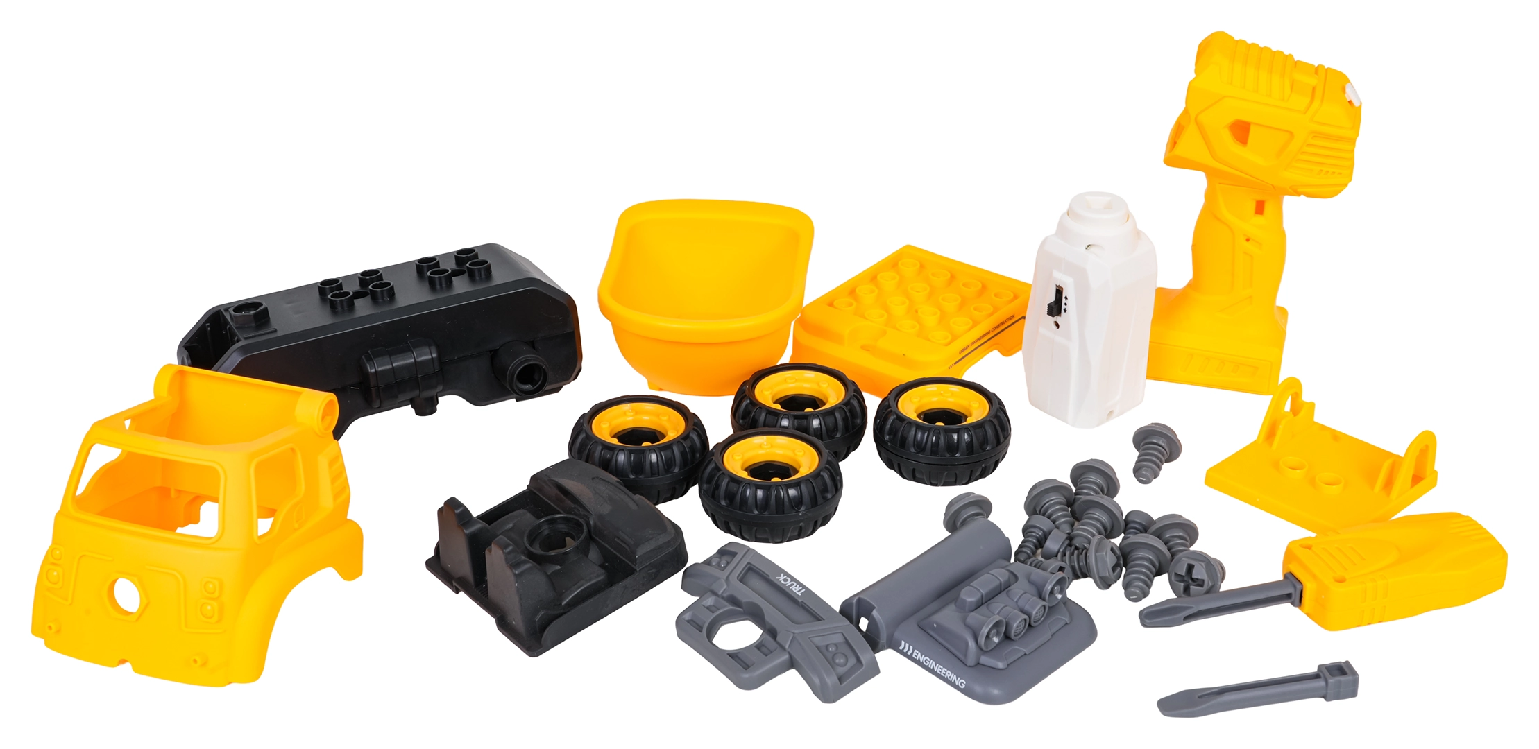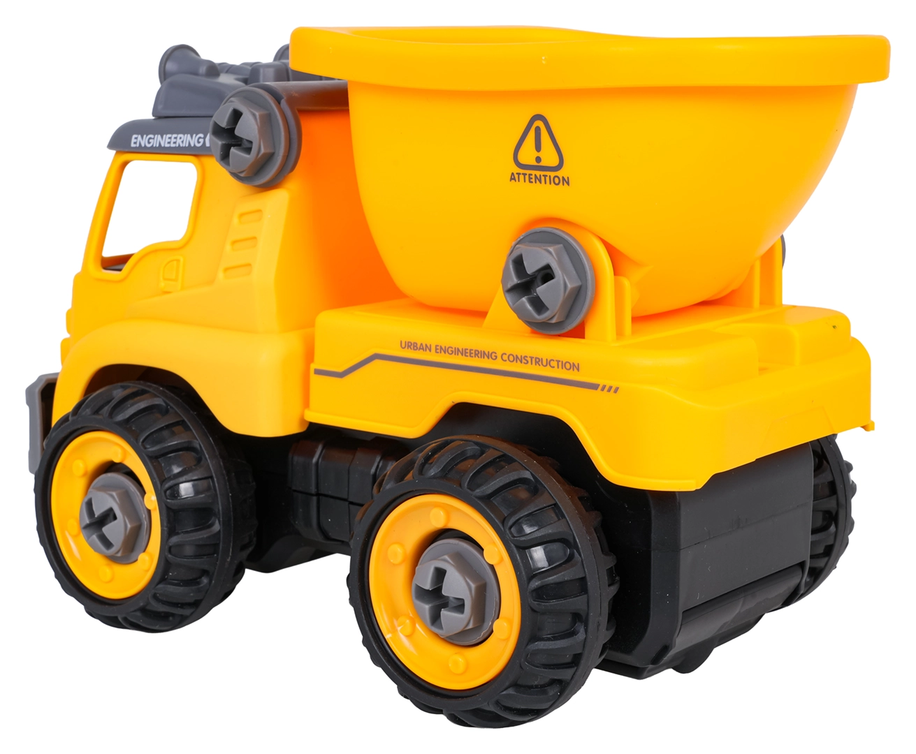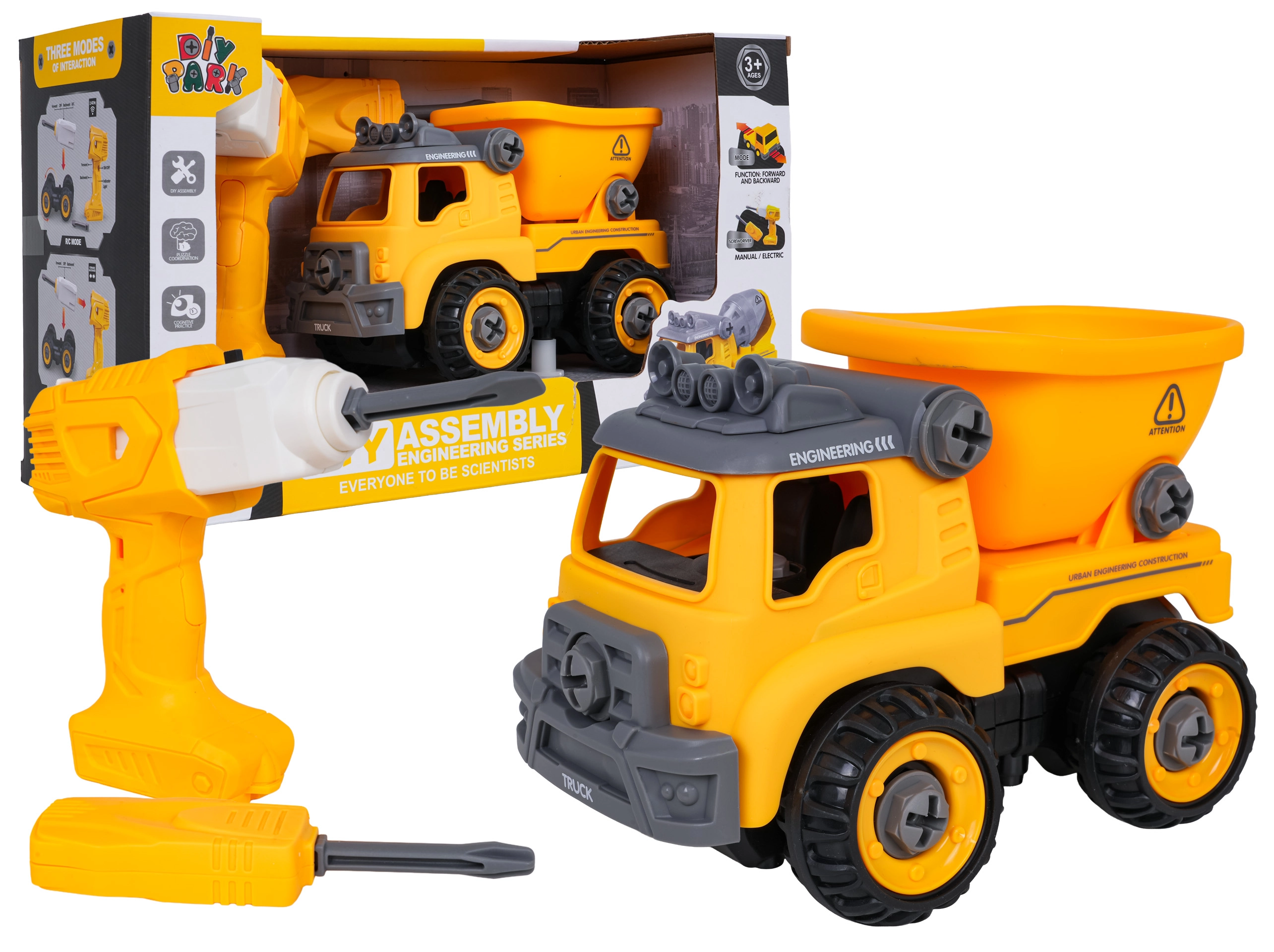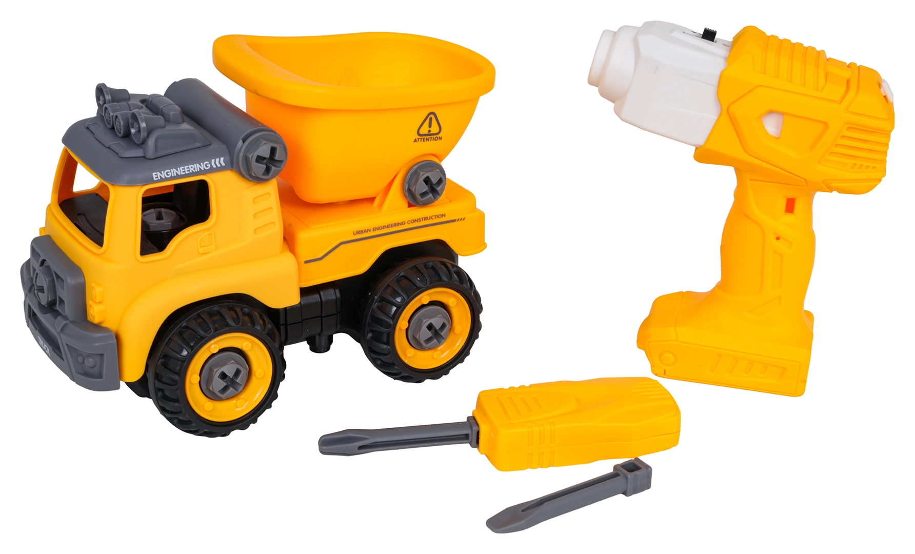 Szórakoztató, szétszerelhető építő teherautó 3 éves kortól, elemes fúróval és kézi csavarhúzóval. A gyerekek könnyedén szétszedhetik és újra összerakhatják a járművet, így fejlesztik a finommotorikát, a logikus gondolkodást és a kreativitást. A vezérlőpanel behelyezése után az autó magától előre és hátra mozog, a billenő plató és a nyitható tető pedig nem hiányzik.