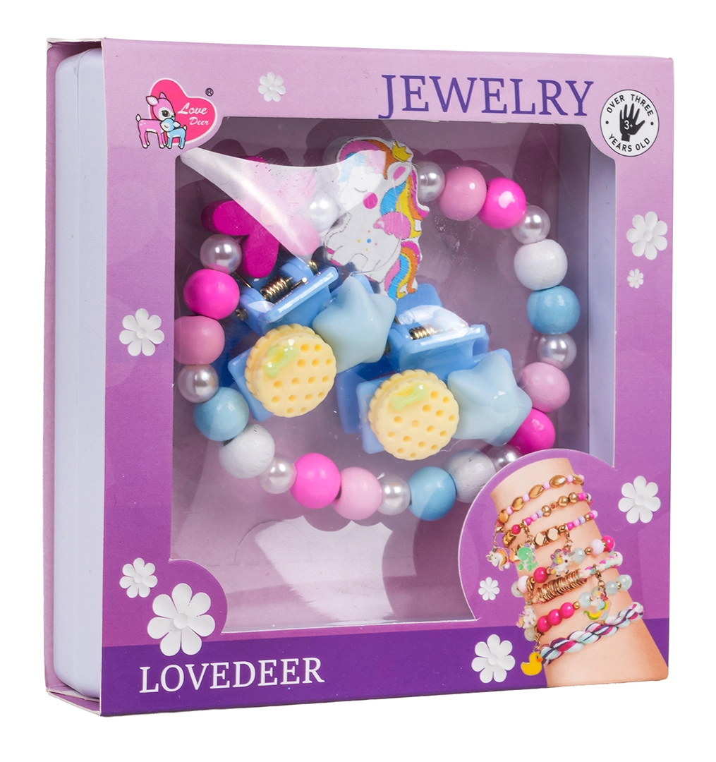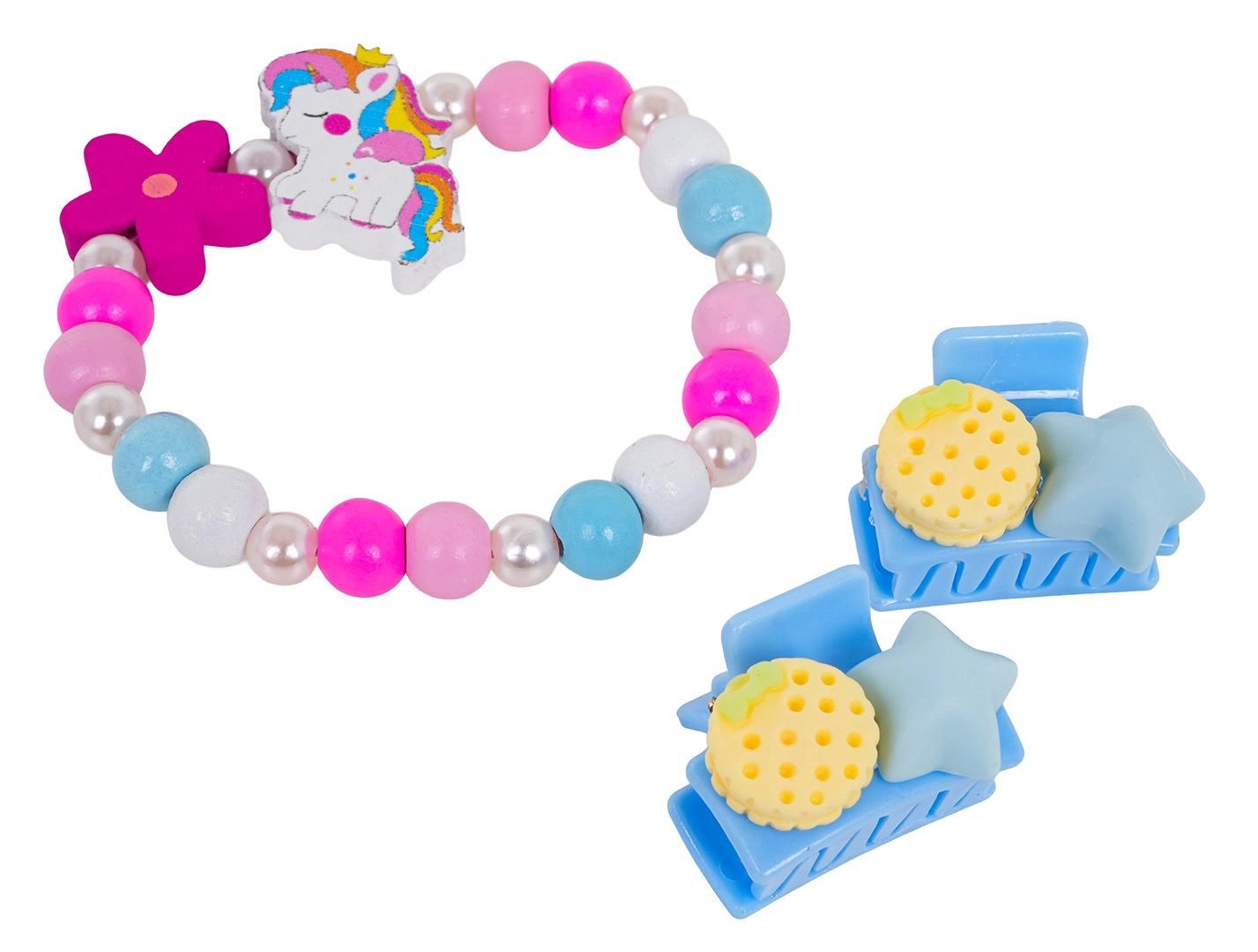 gyermek egyszarvús ékszerszett – rózsaszín karkötő és csatok