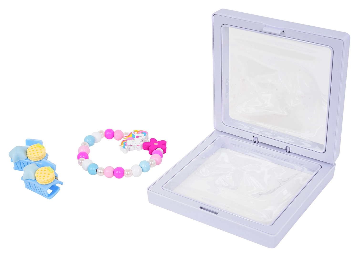Kompakt méretének köszönhetően kényelmesen elfér a hátizsákban vagy a fiókban, és készen áll az otthoni vagy utazás közbeni játékra. Tökéletes választás a színek és a cuki motívumok kis rajongóinak, akik szeretnék egységes stílusba hangolni a karkötőt és a frizurát.