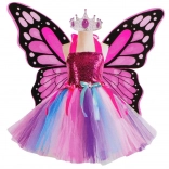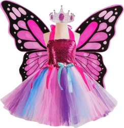 Ez a színes jelmez igazi pillangótündérré varázsol minden gyermeket. Le fog nyűgözni a gazdag színvilág, a szoknya szivárványos hatása, valamint a látványos szárnyak LED fényekkel és hangeffektekkel. Remek választás farsangra, iskolai műsorra, fotózásra vagy egy játékos délutánra.