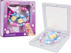 Aranyos gyermek ékszerszett unikornis motívummal, amely 3 éves kortól örömet szerez a kis parádésoknak. Tartalmaz egy színes fa gyöngy karkötőt gyöngyszemekkel és unikornis medállal, valamint két hajcsatot. A szett élénk színeivel, igényes kidolgozásával tűnik ki, és remek ajándékötlet.