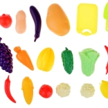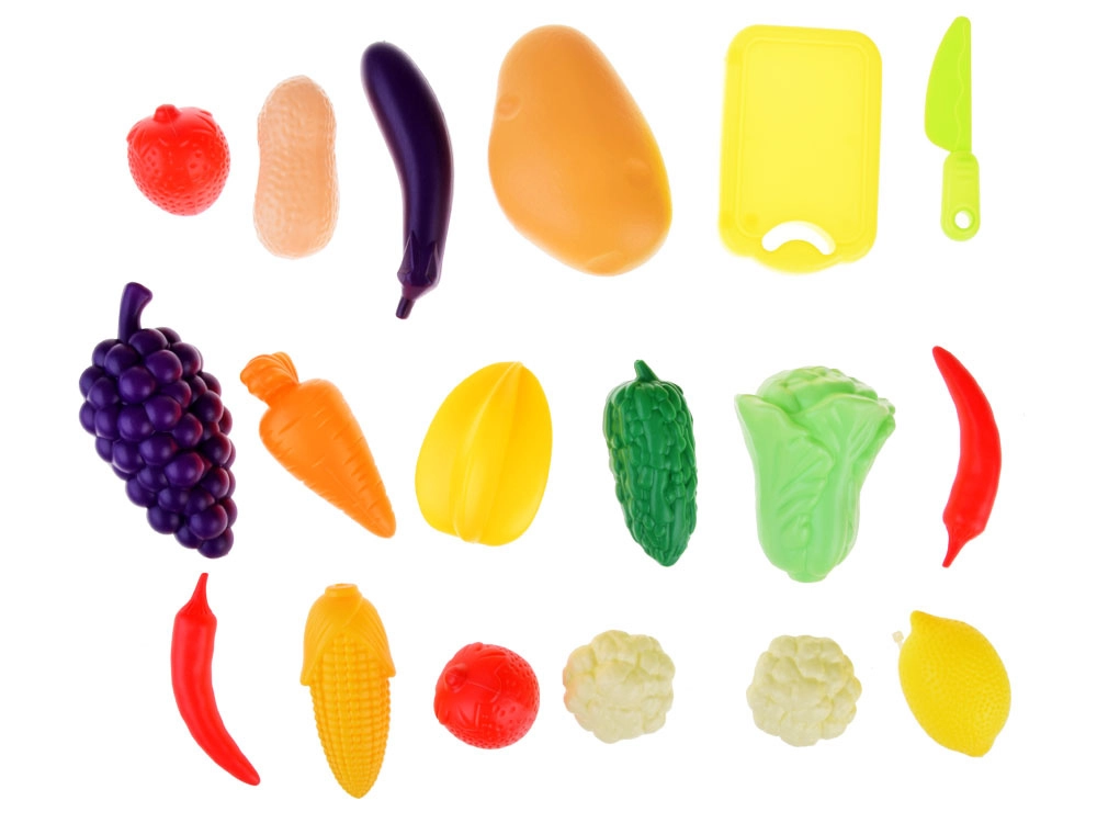 Változatos formák és színek támogatják a képzelőerőt, az élelmiszer-nevek tanulását, valamint az eladó vagy vásárló szerepének gyakorlását.