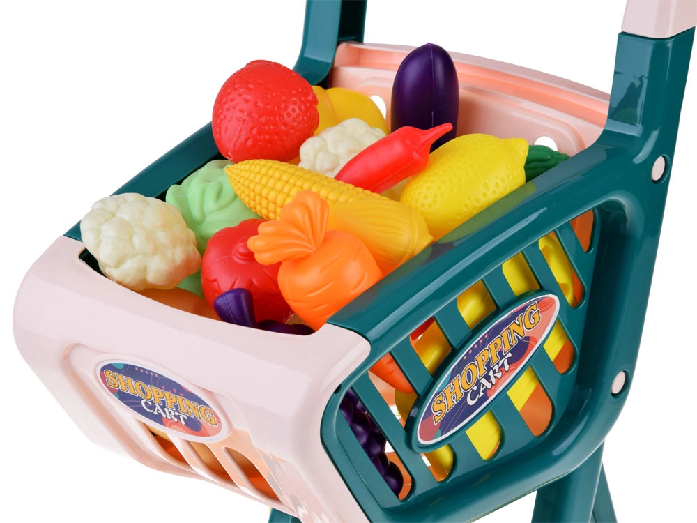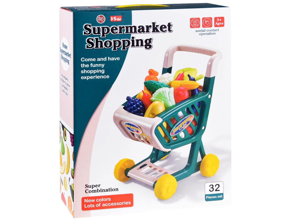 Ez a gyerek bevásárlókocsi ideális a szupermarketes szerepjátékhoz. A masszív műanyag kosárnak, a széles kerekeknek és a kényelmes fogantyúnak köszönhetően a gyerekek könnyen irányíthatják. A készlet változatos gyümölcsöket és zöldségeket tartalmaz élénk színekben, amelyek ösztönzik a kreatív játékot és a mindennapi tevékenységek elsajátítását.