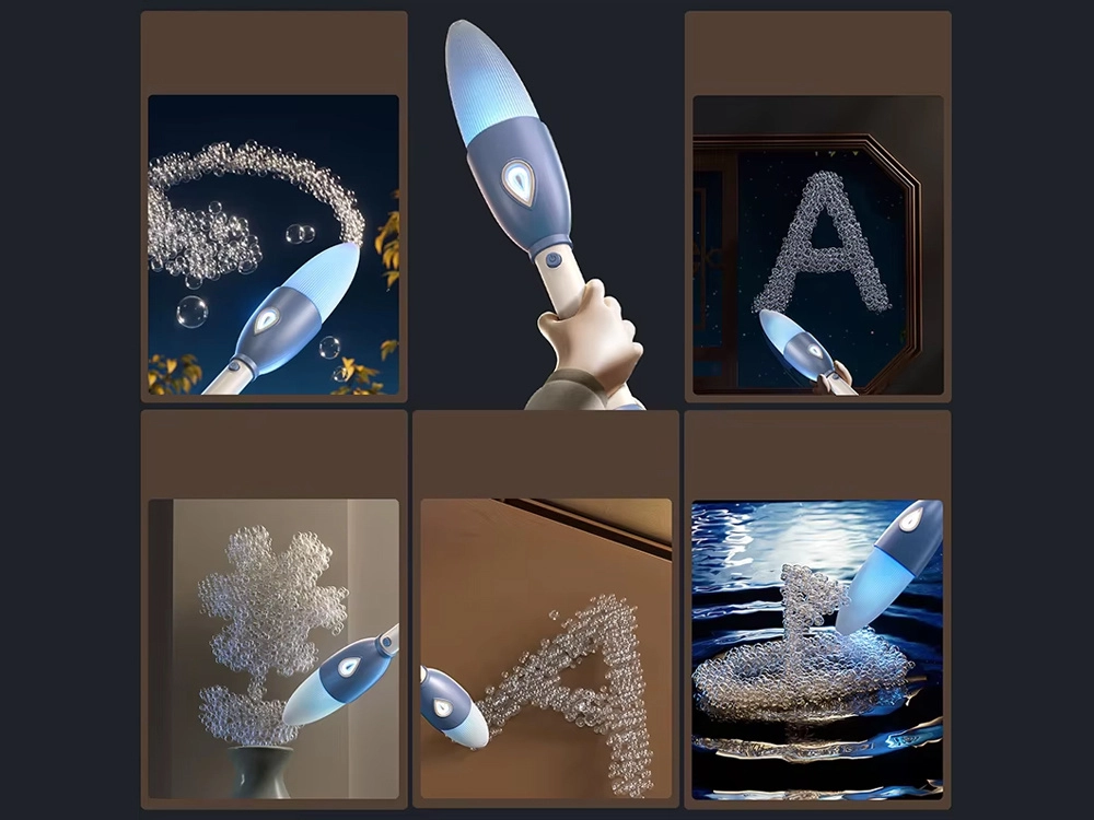 Az eredeti „kalligrafikus” buboréktoll a hagyományos ecsetélményt ötvözi a modern technológiával. Lehetővé teszi gyerekeknek és felnőtteknek, hogy a levegőben írjanak, körvonalazzanak és fessenek színes buborékokkal – ideális bulikra, kerti mókára és családi pillanatokra. Az elektromos meghajtás erőfeszítés nélkül biztosít stabil buborékáramot.