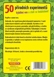 Irány a szabadba, és válj kutatóvá! Ez az 50 kártyából álló készlet bevezet a növények és apró állatok világába. Megtanulod, hogyan „isznak” a virágok, készítesz saját tollat íráshoz, összeállítasz egy egyszerű időjárás-állomást, és bepillanthatsz a pókhálók titkaiba. Minden kísérlet áttekinthetően magyarázott, és gyerekekre szabott.