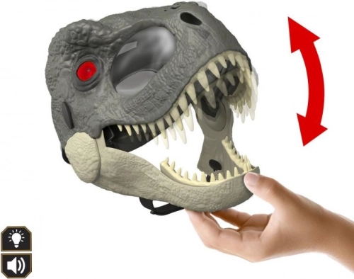 Változz a kedvenc dinoszauruszoddá ezzel a valósághű T. rex maszkkal! LED villogó szemekkel, autentikus morgó hangokkal és három dühszinttel a szájnyitás mértékétől függően. A állítható pántnak és a szem- és szájnyílásoknak köszönhetően a maszk kényelmes és biztonságos gyerekjátékhoz és jelmezekhez is.