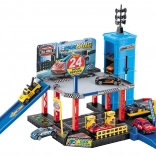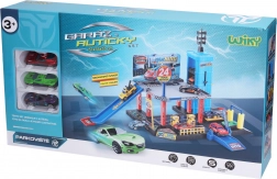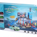 - Komplett készlet az azonnali játékhoz – garázs, lift, benzinkút és 3 kisautó