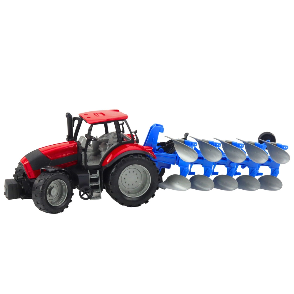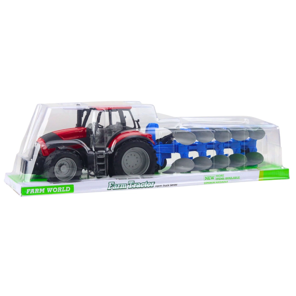 Realista traktor ekével kis gazdáknak, nagy, 50 cm-es mérettel, hátsókerék-hajtással és részletgazdag kidolgozással. A masszív, piros traktor kék, többvasú ekével támogatja a kreatív játékot és fejleszti a gazdasági munkákról szerzett ismereteket. Kiváló játékként és edukációs szettként, átlátszó előlappal ellátott díszdobozban szállítva.