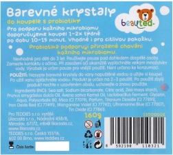 A színes fürdőkristályok a mindennapi higiénét örömteli rituálévá varázsolják. Meleg vízbe szórva pezsgő hatást keltenek, kellemesen megszínezik a vizet és finom illatot hagynak maguk után. A probiotikumok, a tengeri só ásványi anyagai, a zabkivonat és a mandulaolaj kombinációja segít megnyugtatni és táplálni a bőrt, valamint támogatja annak természetes védekezőképességét.