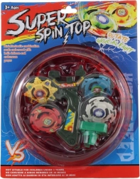 Szórakoztató készlet kicsiknek és nagyoknak a pörgetés rajongóinak: kilövős pörgettyűk műanyag arénával, 17 cm átmérővel, 4 színes pörgettyű és kilövő eszköz a gyors indításhoz. Pörgethető szabadon vagy az arénában, ideális versenyekhez és készségfejlesztő gyakorláshoz. Ajánlott 3 éves kortól.