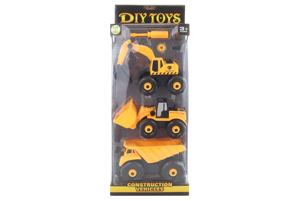 Szórakoztató építőkészlet kis építőknek: a szett tartalmaz egy markolót, rakodót, dömpert és egy gyermek csavarhúzót. A gyerekek saját maguk szerelhetik szét és állíthatják össze újra a járműveket, ezzel fejlesztve a finommotorikát, a logikus gondolkodást és a türelmet. Ideális ajándék 3+ éves kortól.