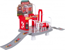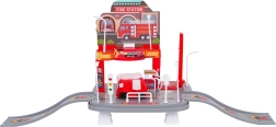 Ez a részletgazdag tűzoltóállomás megemelt alapon órákig tartó fantáziajátékot kínál. A két parkolószint, a lejtők és a kézzel működtethető felvonó fejleszti a finommotorikát és ösztönzi a szerepjátékot. Az alsó szintet benzinkút, közlekedési táblák, lámpák és be-/kijárat egészíti ki csúszórámpák formájában.
