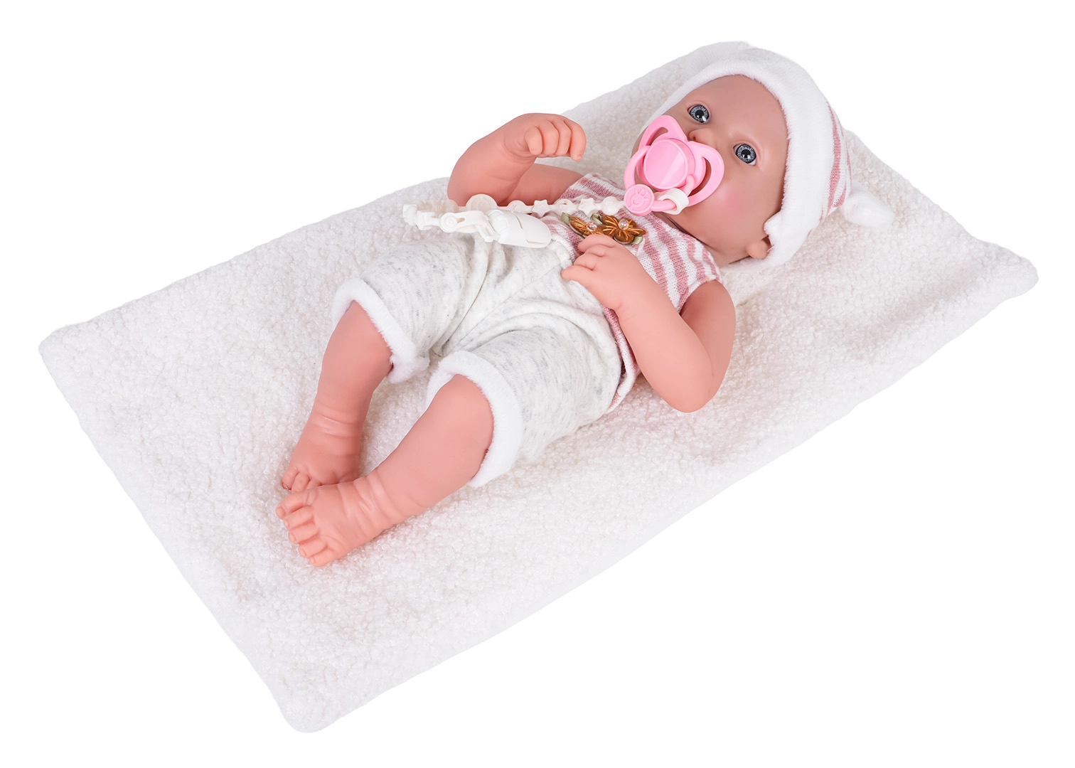 Finom arcvonások, élethű bőrtónus és gondosan formázott kezek-lábak teszik a babát valósághű kisbabává az autentikus játékhoz.