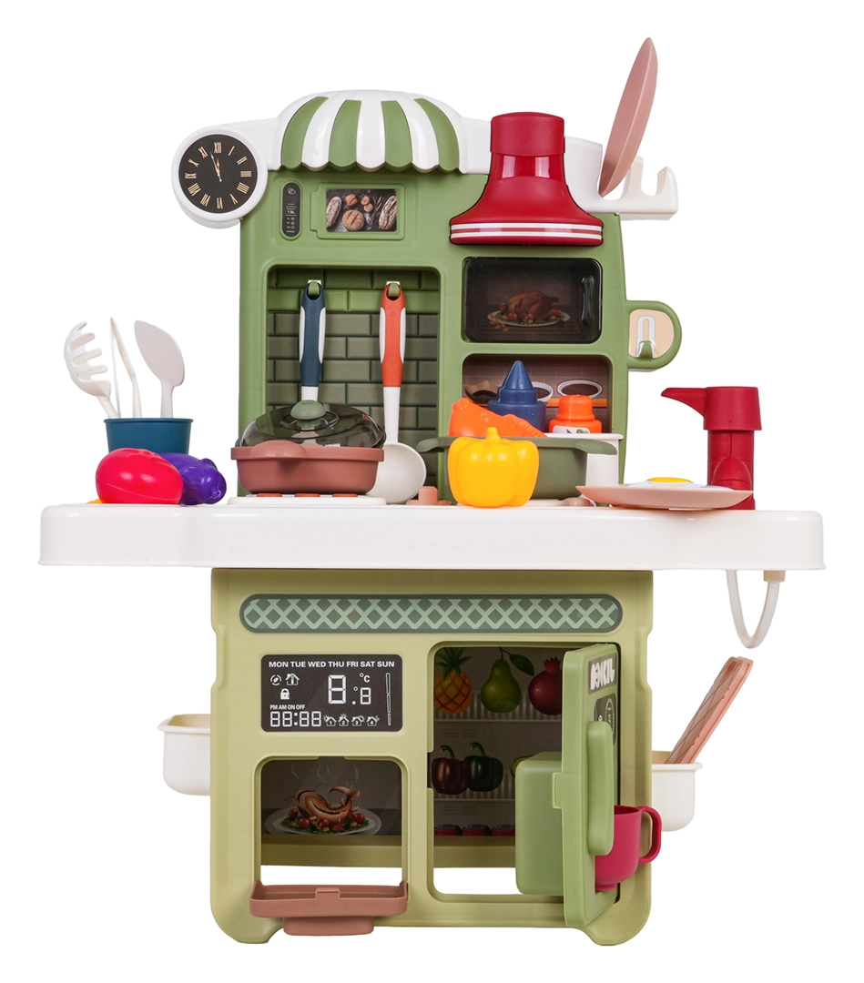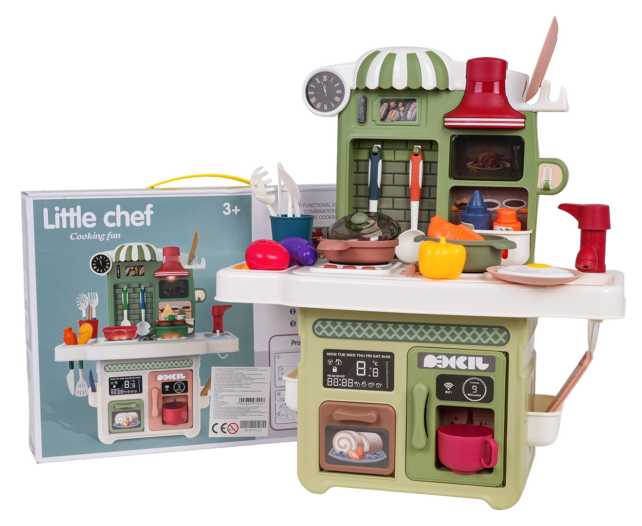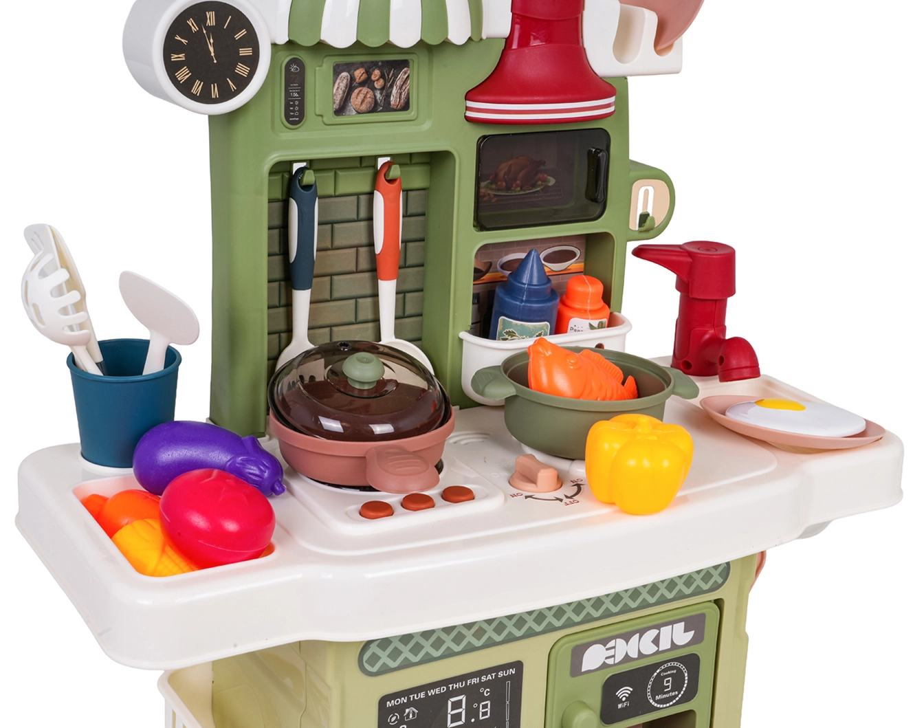 Az interaktív, zöld színű gyermek konyha valósághű szórakozást nyújt 3 éves kortól. Kínál fény- és hangeffekteket az égőknél, pumpás csapból folyó vizet, nyitható sütőt és gazdag tartozékkészletet. A gyerekek élvezhetik a főzés és sütés hangjait, a dalokat és mondókákat, valamint a megvilágított páraelszívót – mindezt a biztonságos és ösztönző főzősjátékért.