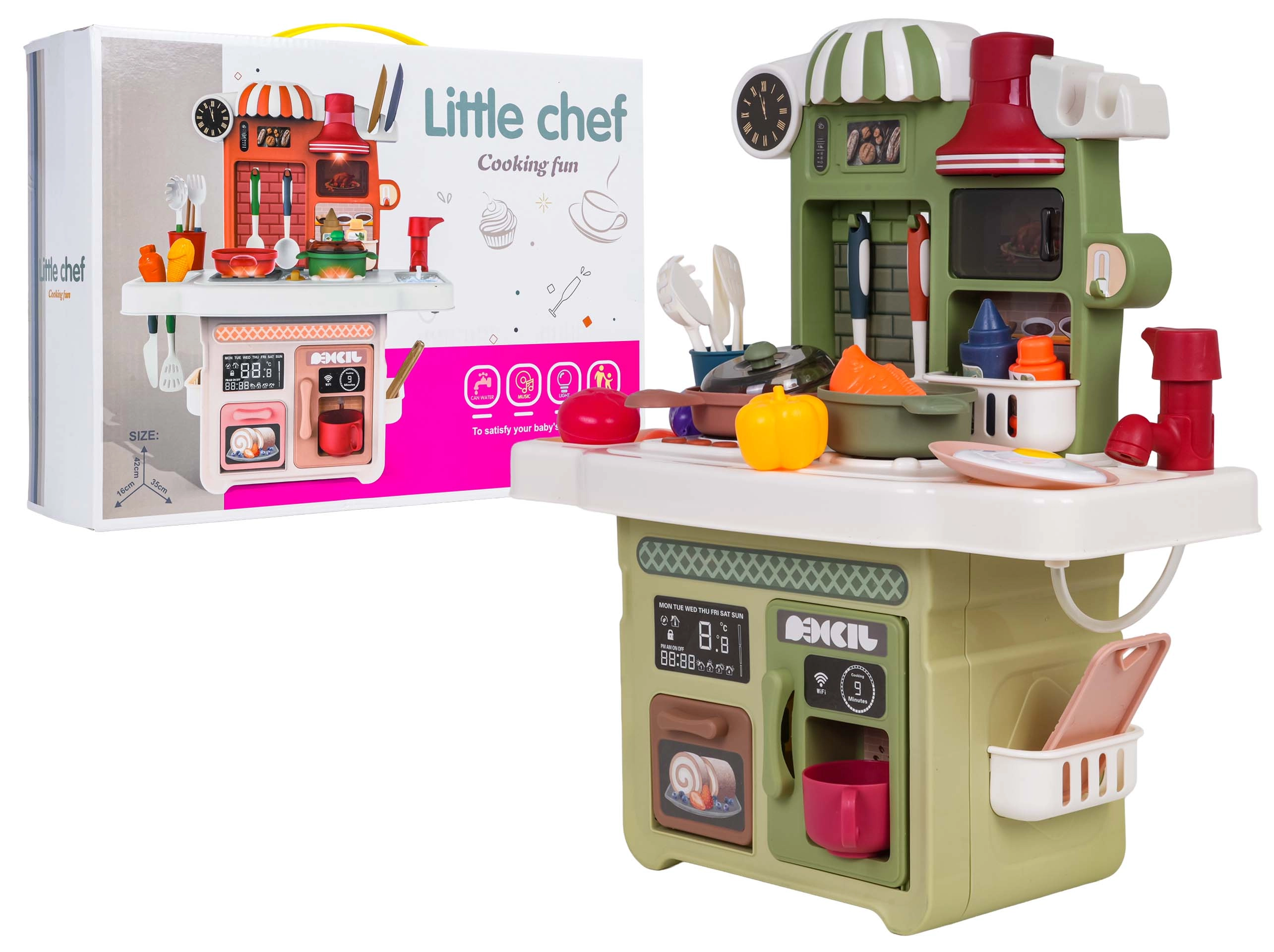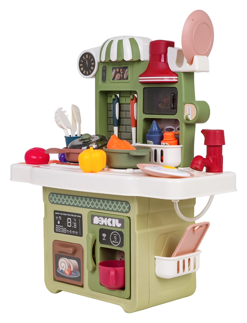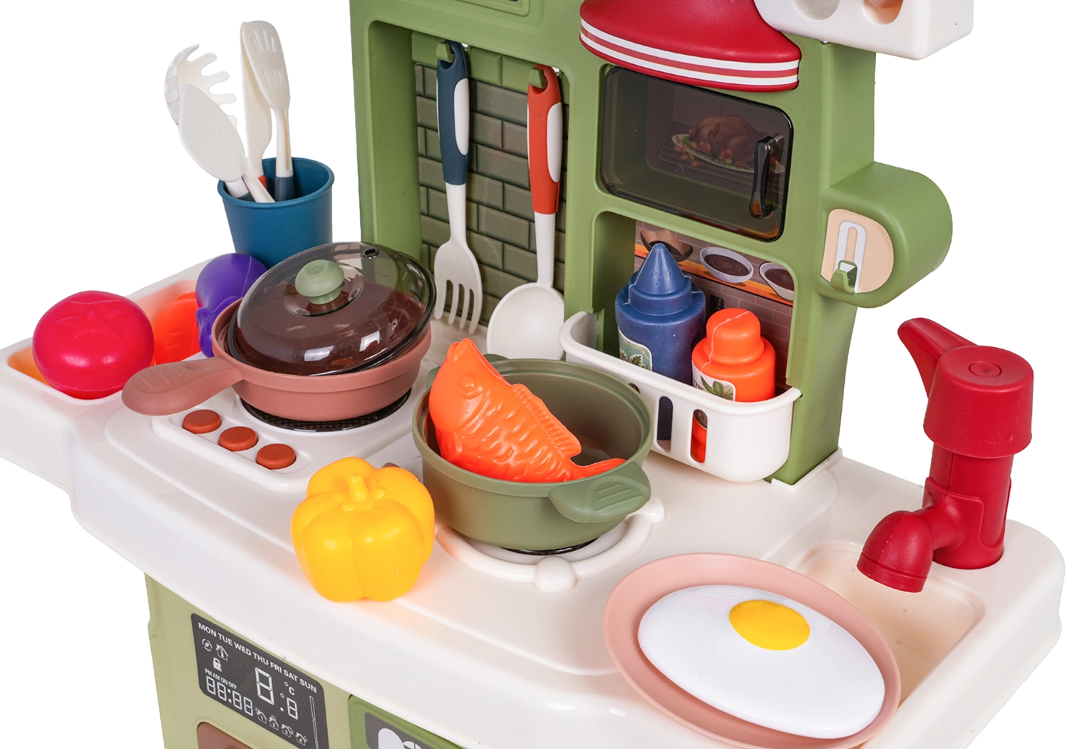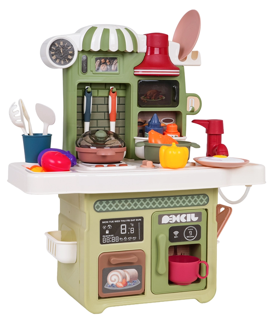 Az interaktív, zöld színű gyermek konyha valósághű szórakozást nyújt 3 éves kortól. Kínál fény- és hangeffekteket az égőknél, pumpás csapból folyó vizet, nyitható sütőt és gazdag tartozékkészletet. A gyerekek élvezhetik a főzés és sütés hangjait, a dalokat és mondókákat, valamint a megvilágított páraelszívót – mindezt a biztonságos és ösztönző főzősjátékért.