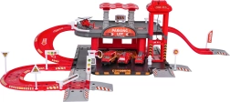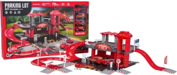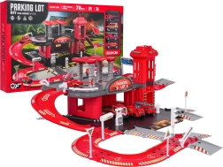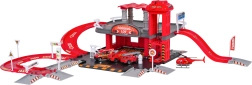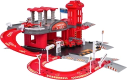 Ez a részletgazdagon kidolgozott tűzoltóállomás-szett ötvözi a szórakozást és a készségfejlesztést. A gyerekek tankolhatnak a benzinkútnál, közlekedhetnek az úton, a kézi felvonóval a felső szintre vihetik a járművet, és a kijelölt helyeken parkolhatnak. A felső szintről a járművek felvonóval térhetnek vissza, vagy sebesen lesuhanhatnak a spirálrámpán.